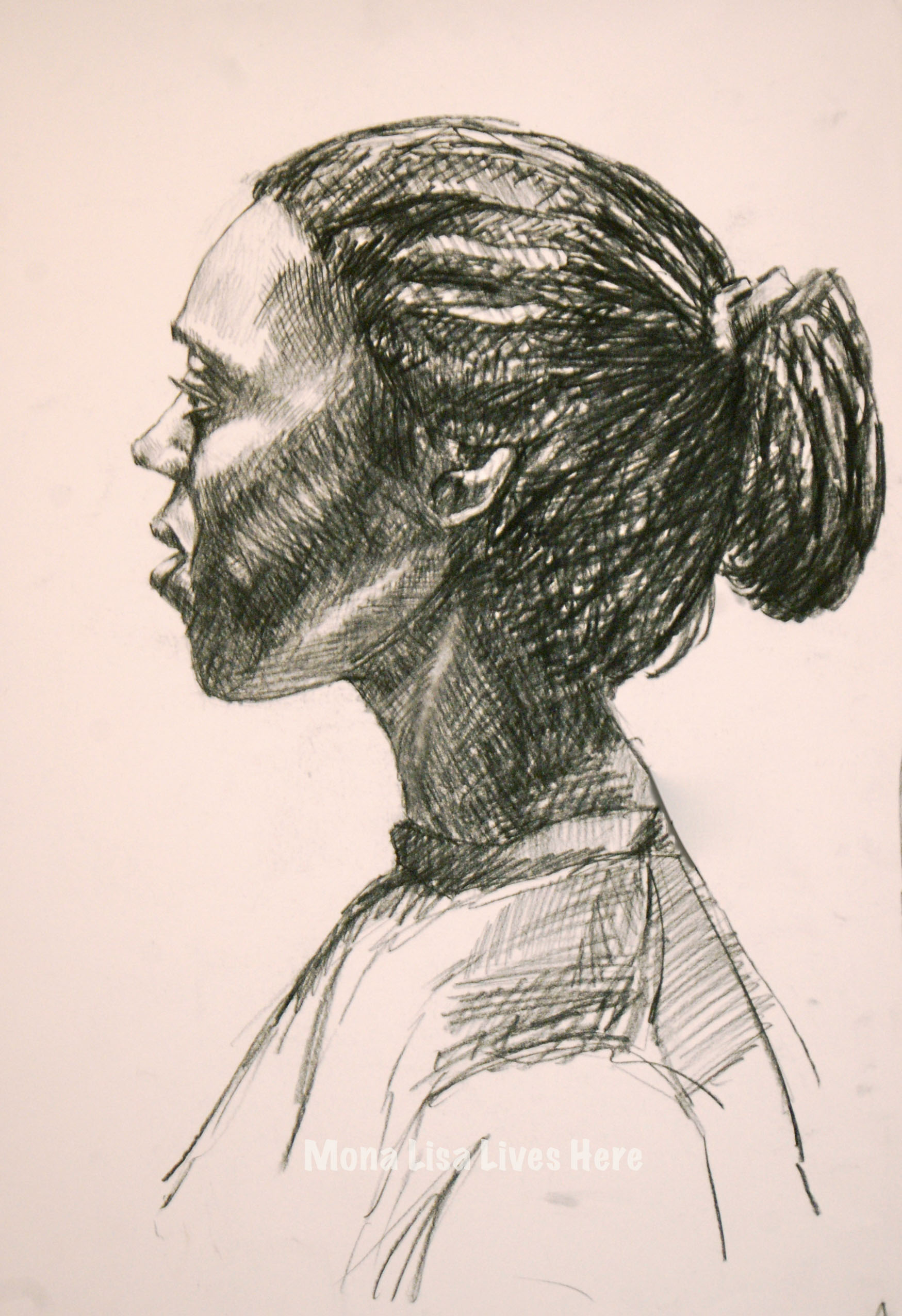 This drawing was done in the basement of my first apartment while in college. It is dark and dramatic and the last of the self portraits during art school.